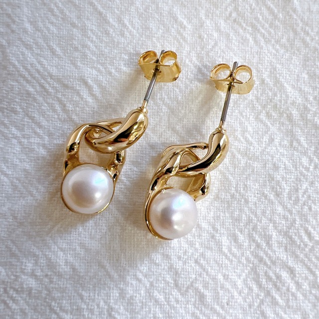 白玉しずく型ピアス ゴールド(mimi-G08)