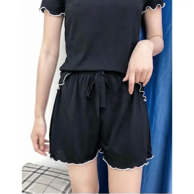 ♡商品説明 袖と裾をメロウで仕上げた上下セットアップのルームウェア。 ショートパンツはウエストゴムと紐の仕様になっており、上下セパレートなので別々でも使えます。 ♡カラー ブラック ♡サイズ フリーサイズ トップス 着丈57cm×肩幅37cm×胸囲42cm×袖丈13cm ショートパンツ 総丈35cm×ウエスト30cm ♡素材 ポリエステル80%、ポリウレタン20% ♡生産地 中国