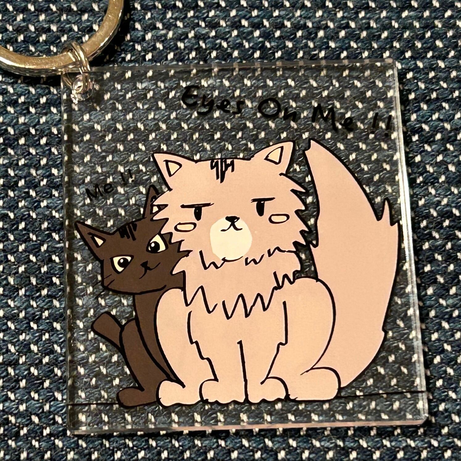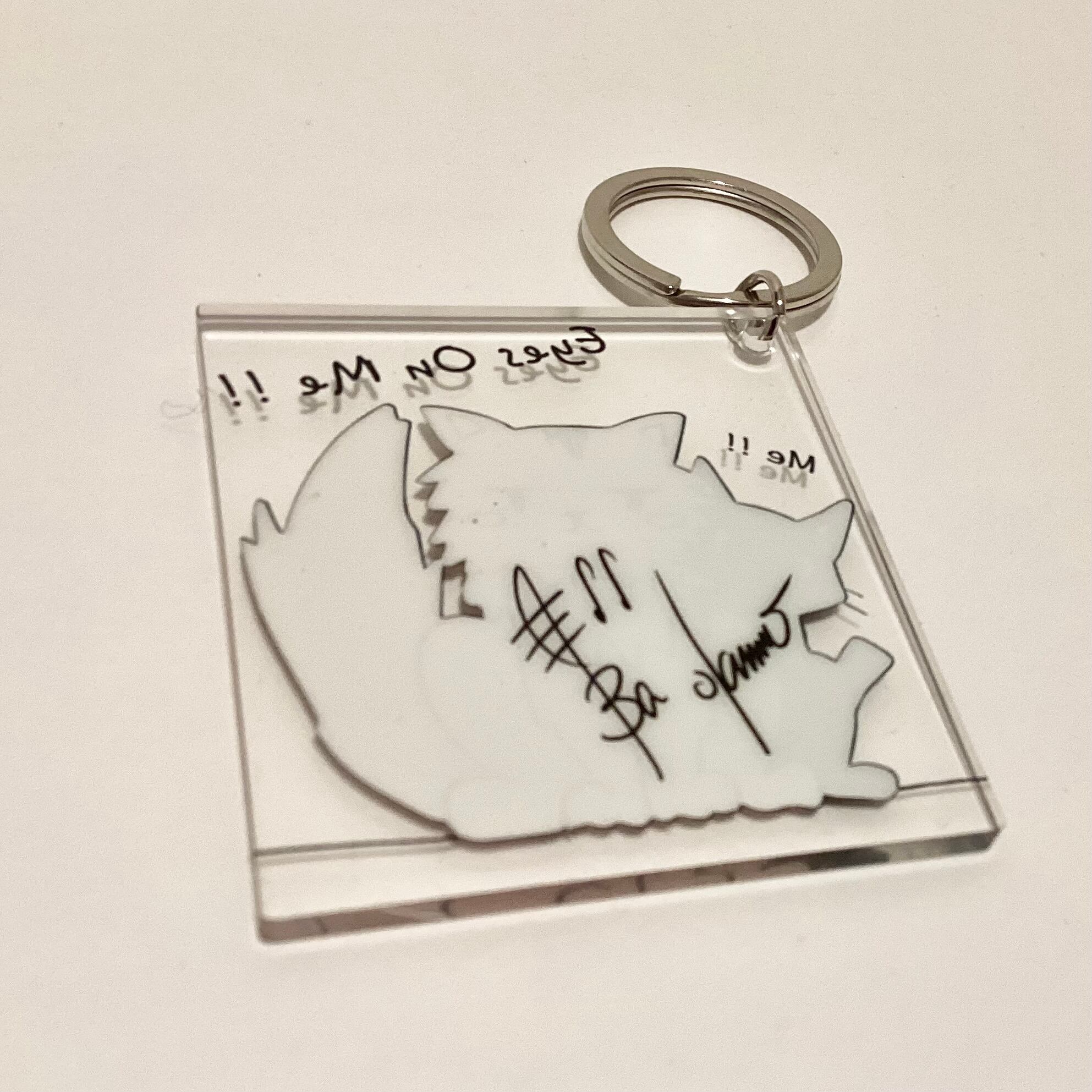 可愛い猫のイラストが入ったアクリルキーホルダーです。