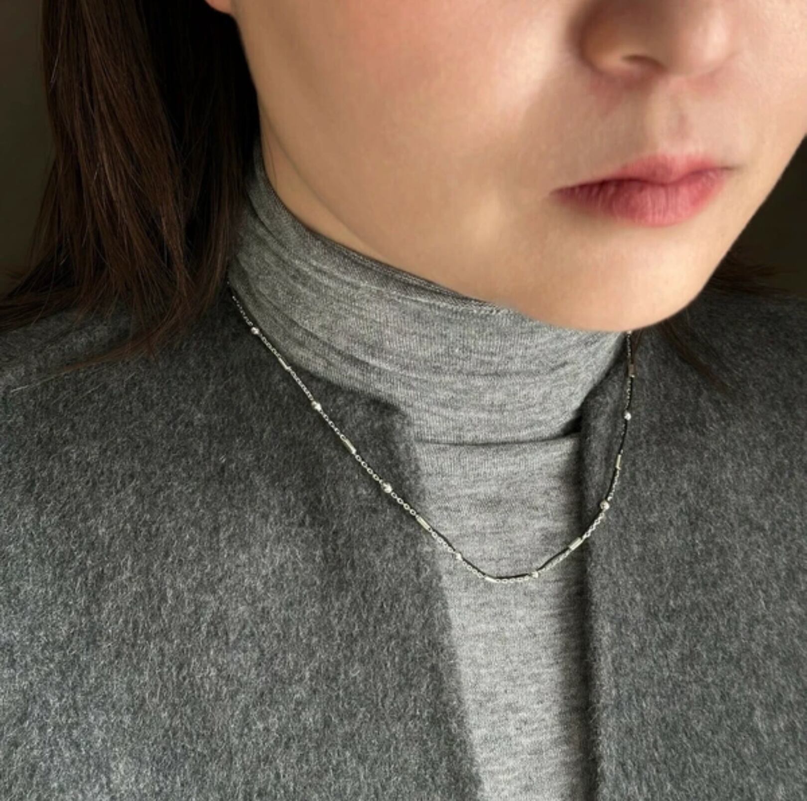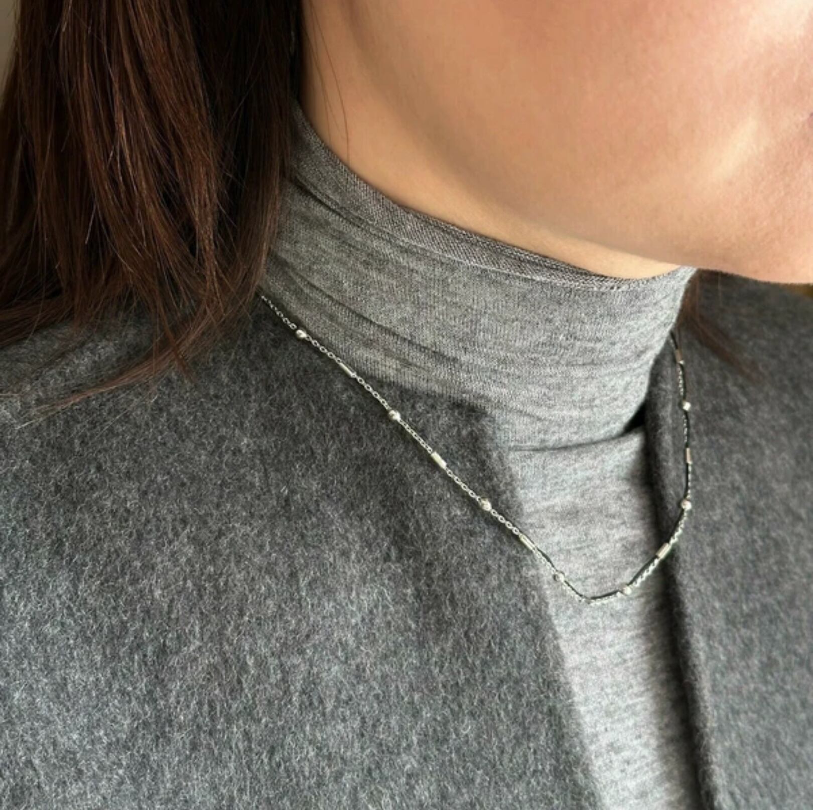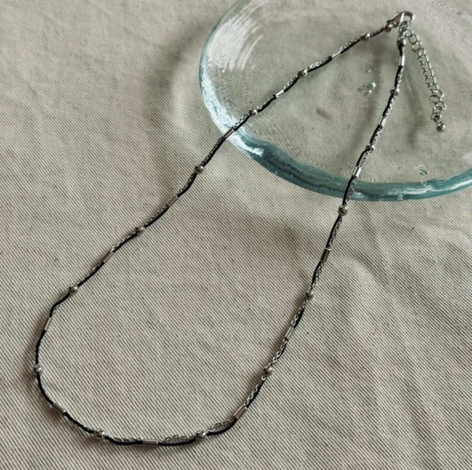 メタルボールとブラックコードが絶妙に組み合わさった韓国製のコンビネックレス。