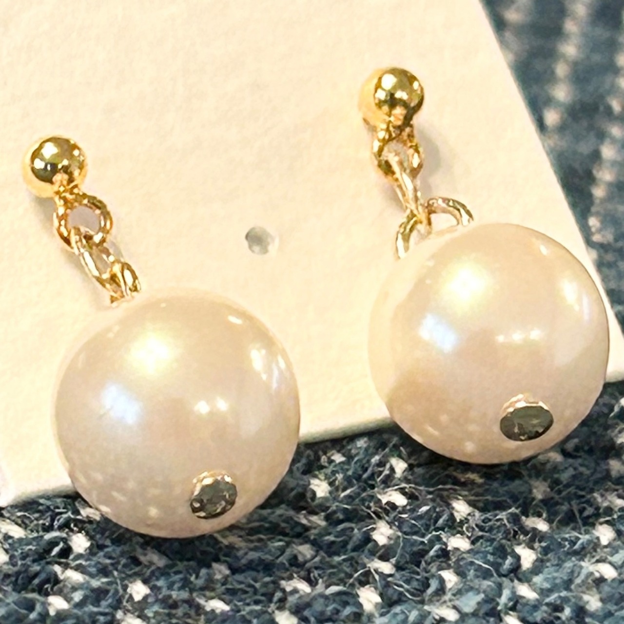 ちょこんと添えられたフェイクパールが耳元にさりげない華やかさを添えてくれます。