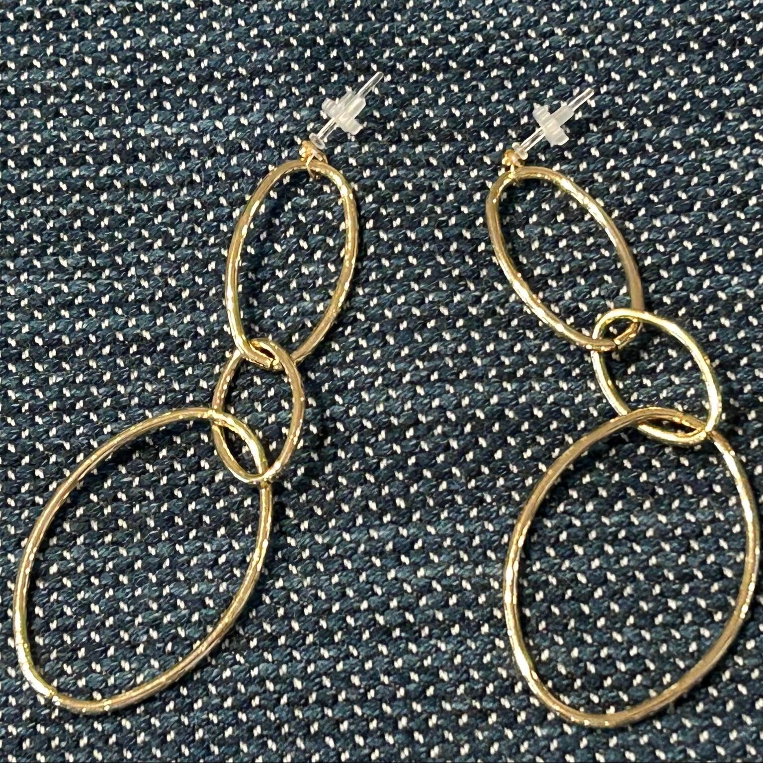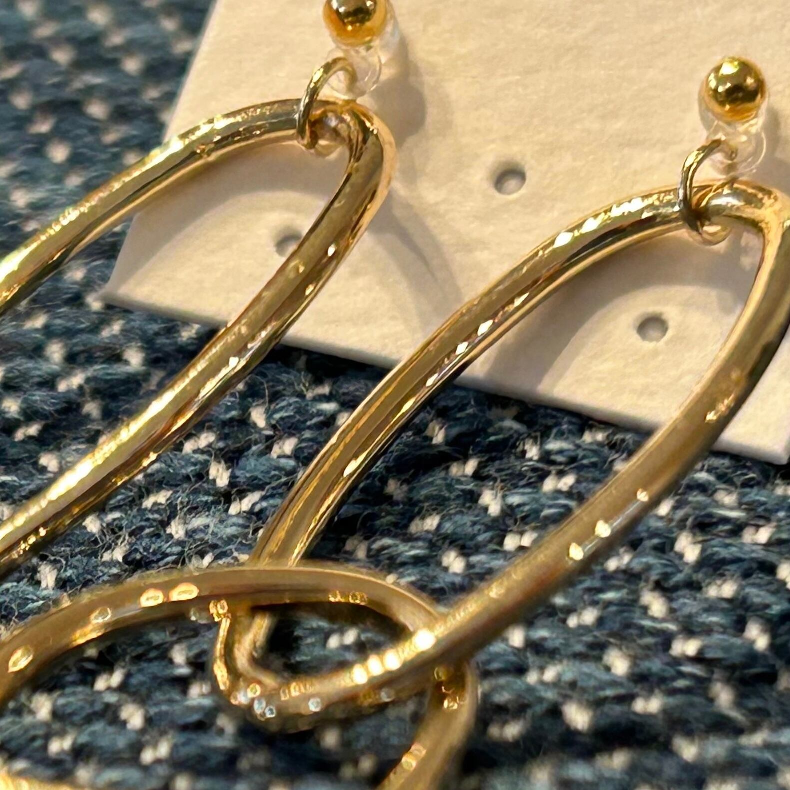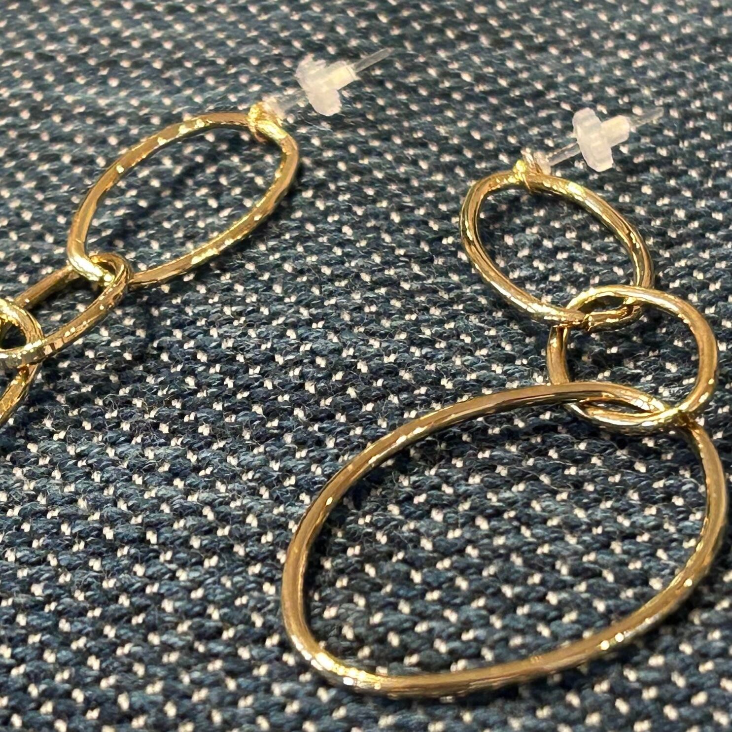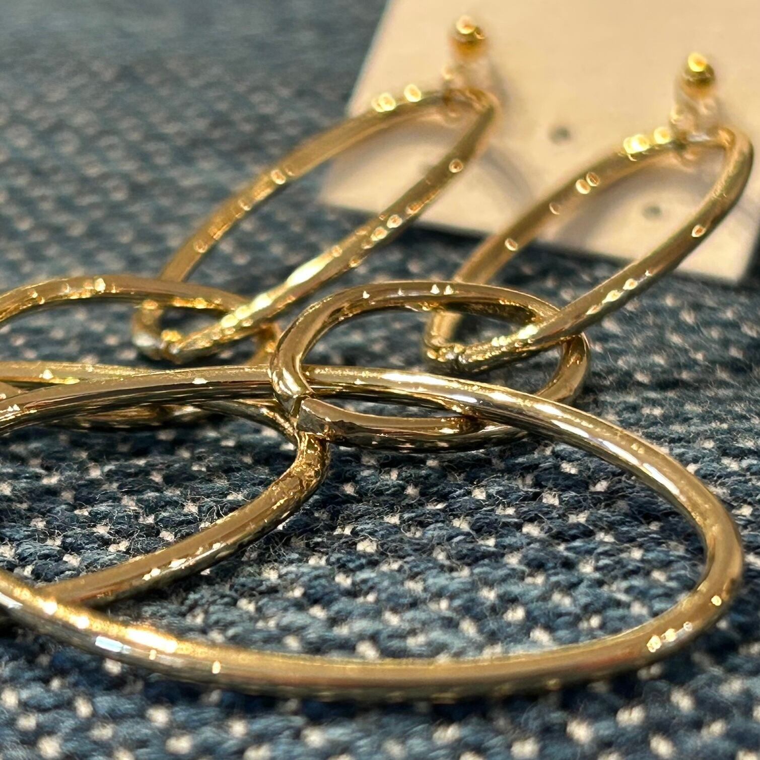 華やかさと抜け感を兼ね備えた、ゴールドカラーのトリプルオーバルピアス。