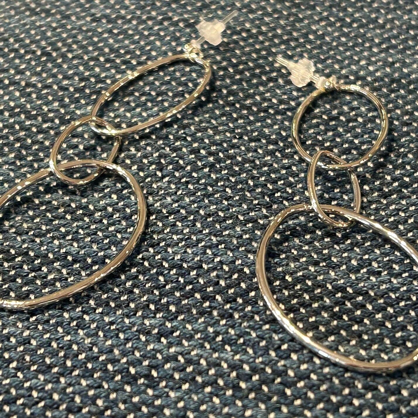 華やかさと抜け感を兼ね備えた、シルバーカラーのトリプルオーバルピアス。