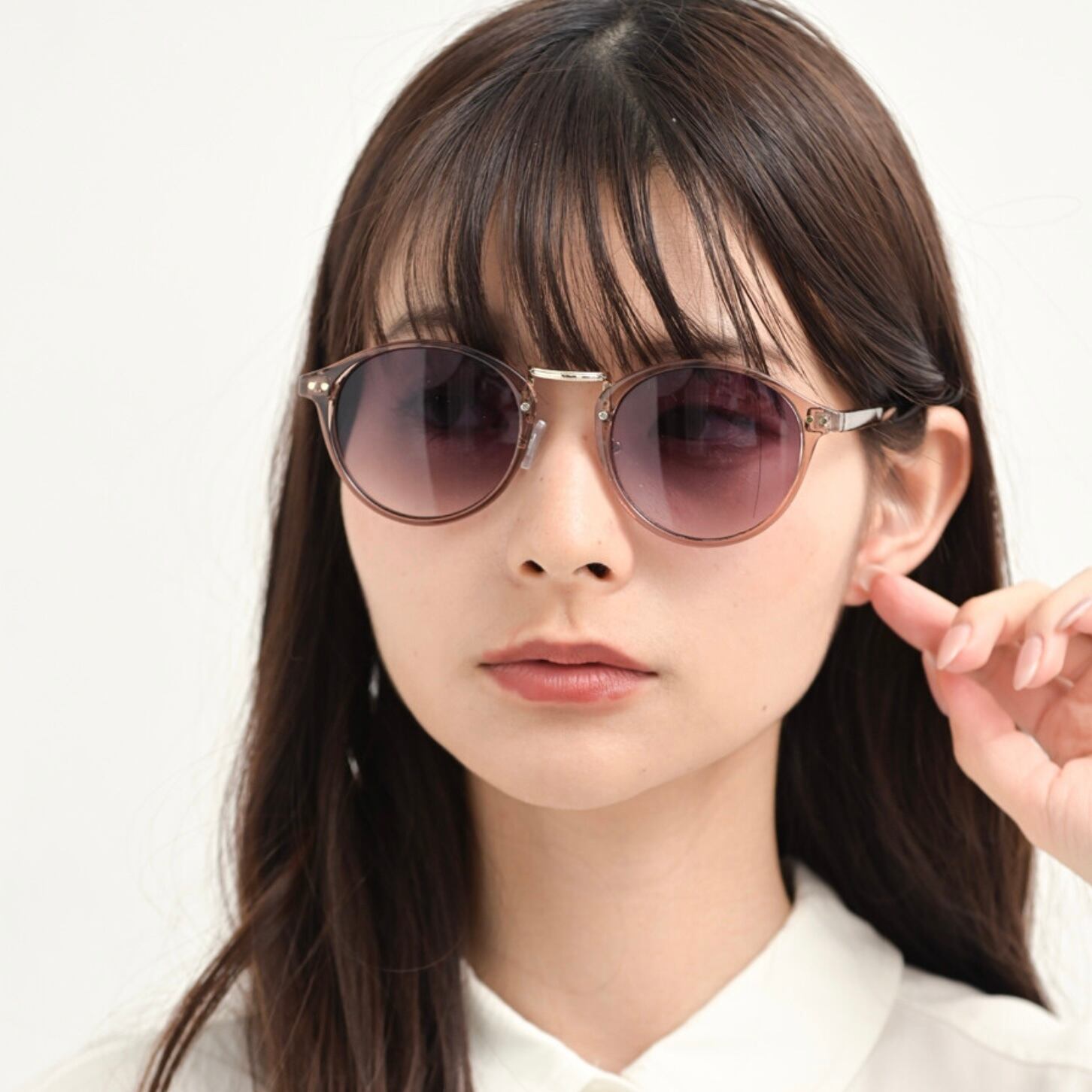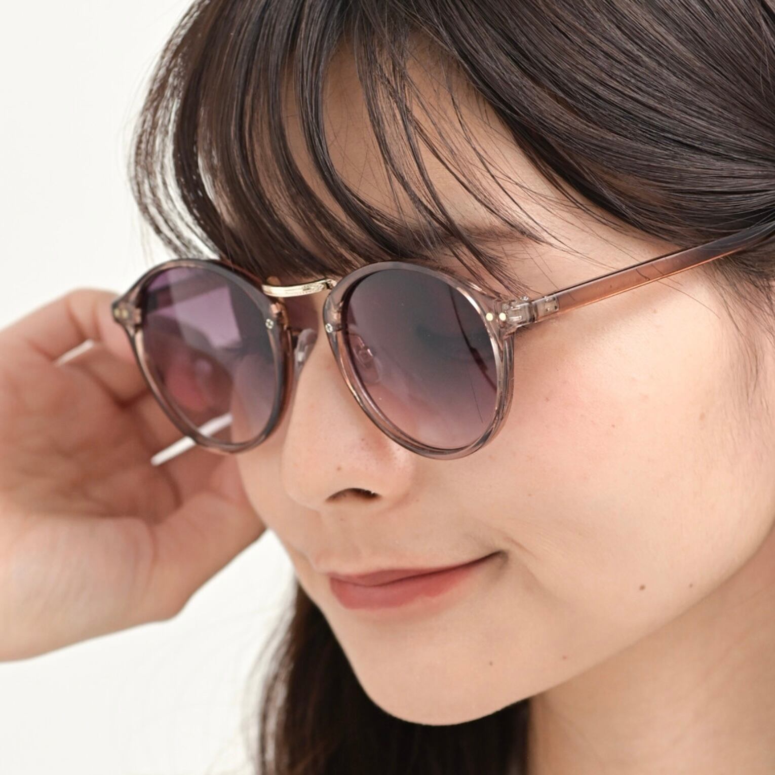 UVカット ラウンドボストンサングラス ブラウン×スモークハーフ(mimi-SG09)