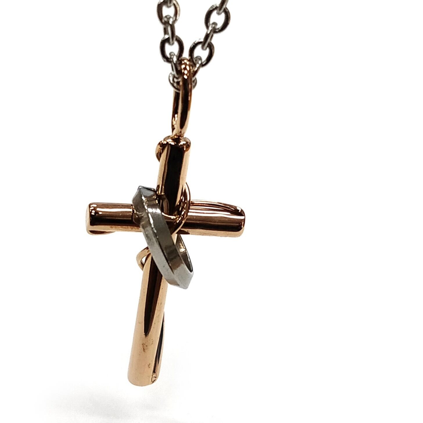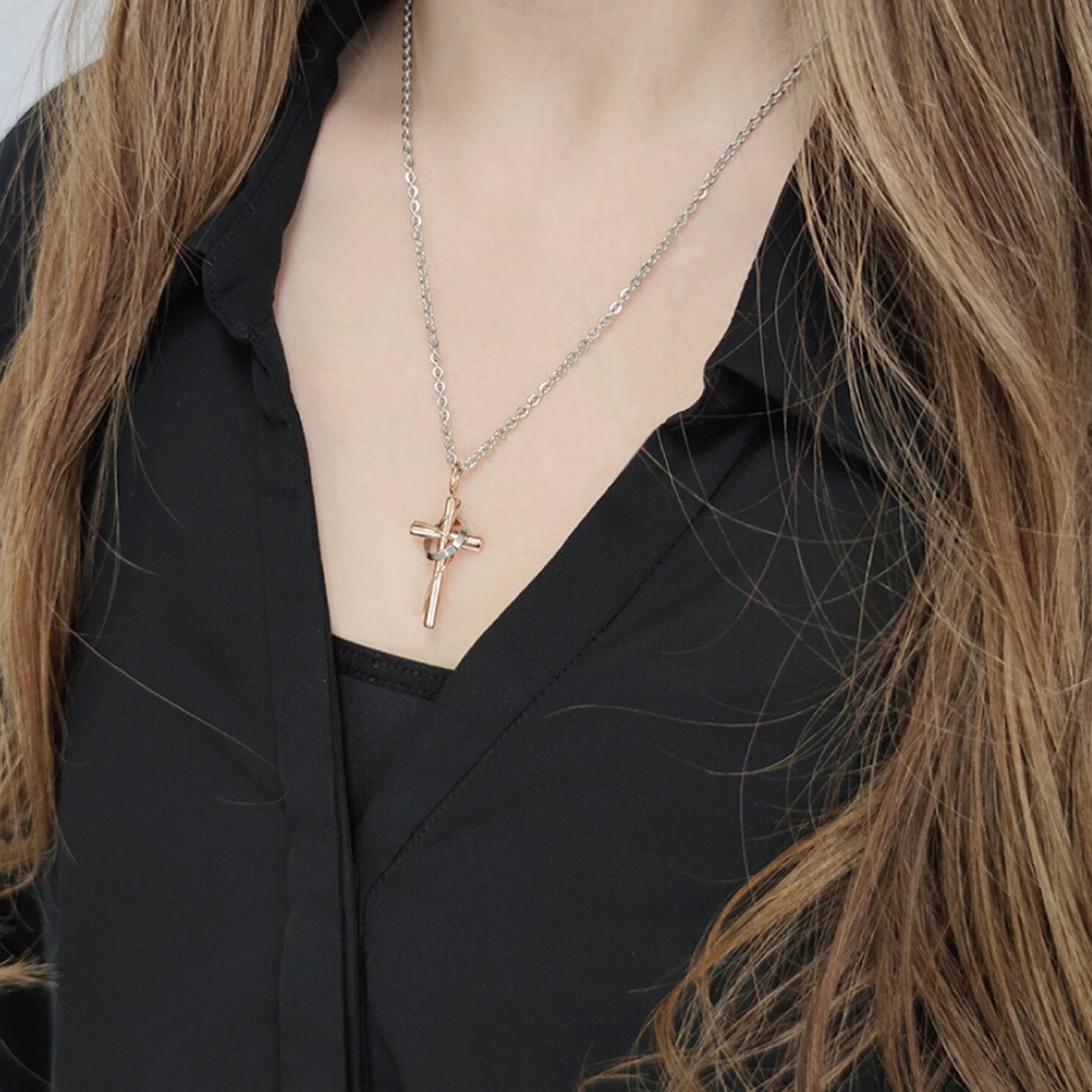 クロスモチーフでステンレススチール素材のネックレス。