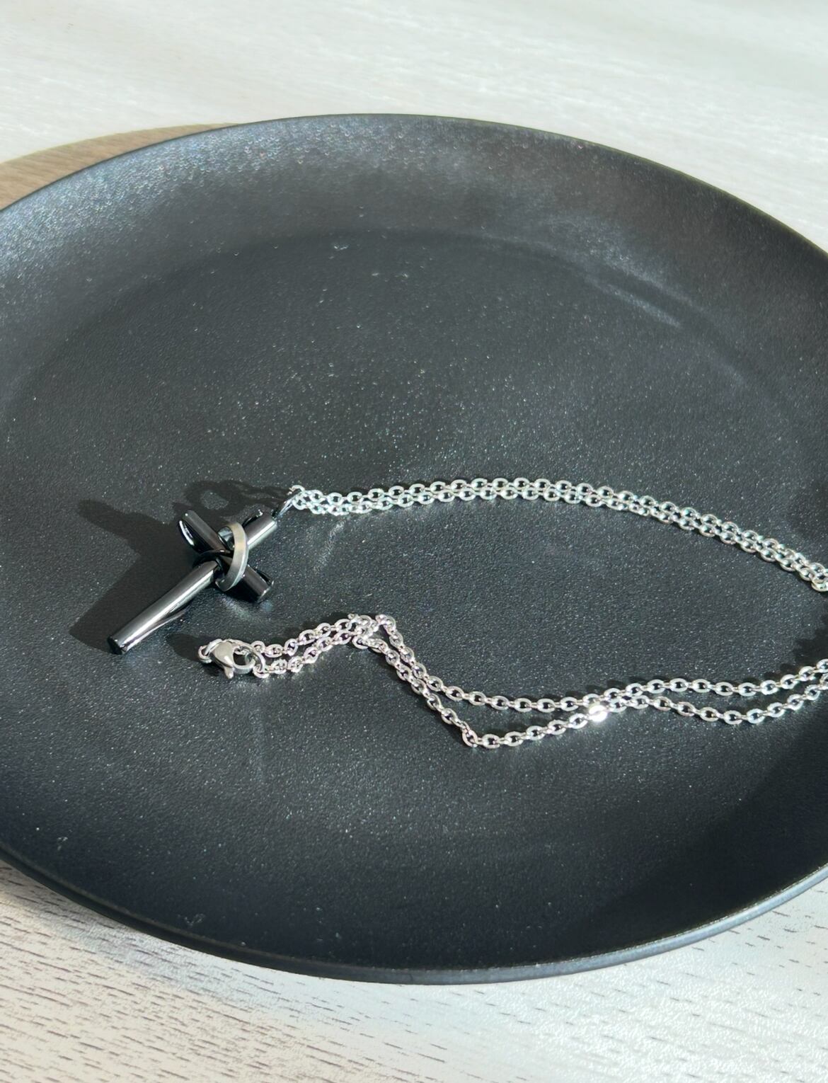 クロスモチーフでステンレススチール素材のネックレス。