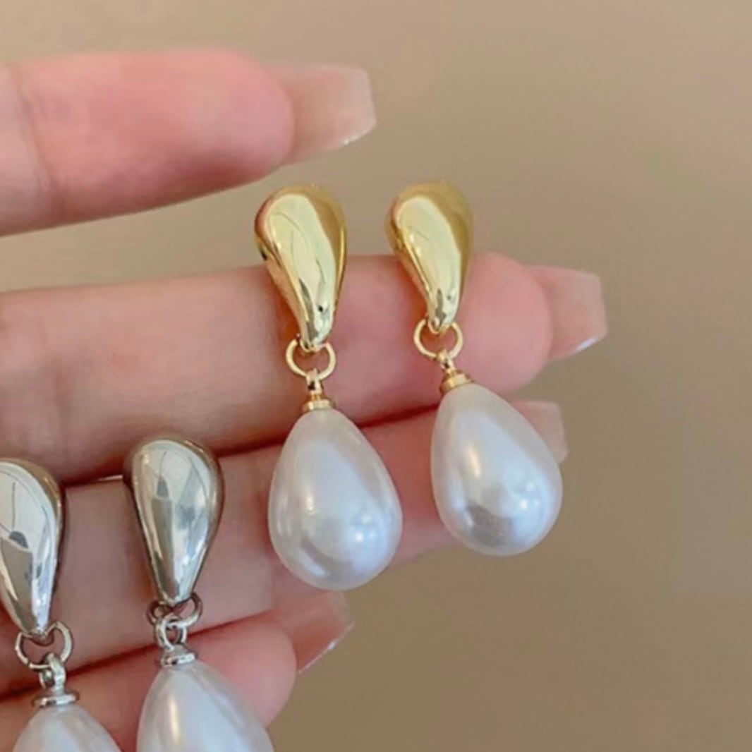 やわらかな曲線が美しい雫モチーフのゴールドカラーのピアス。