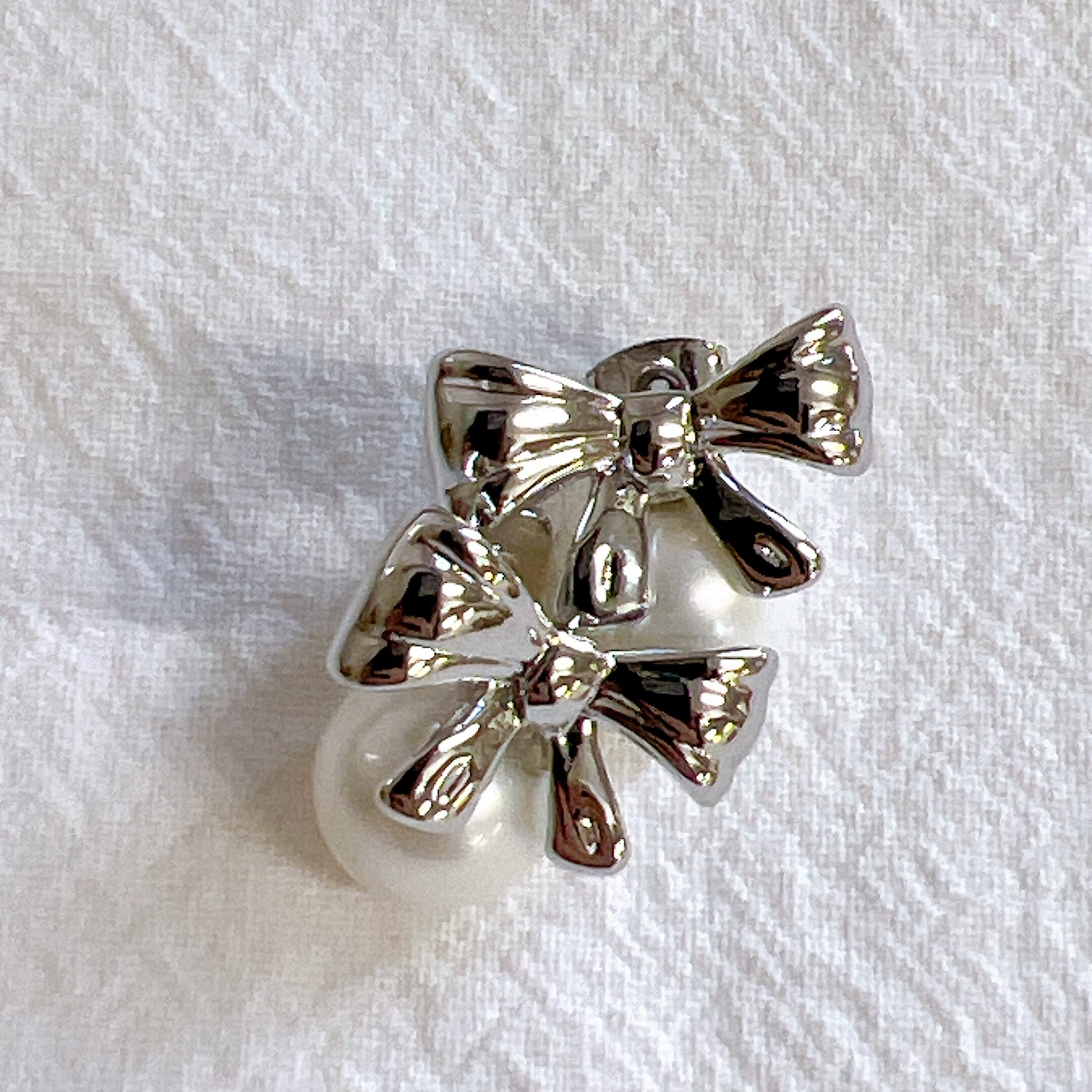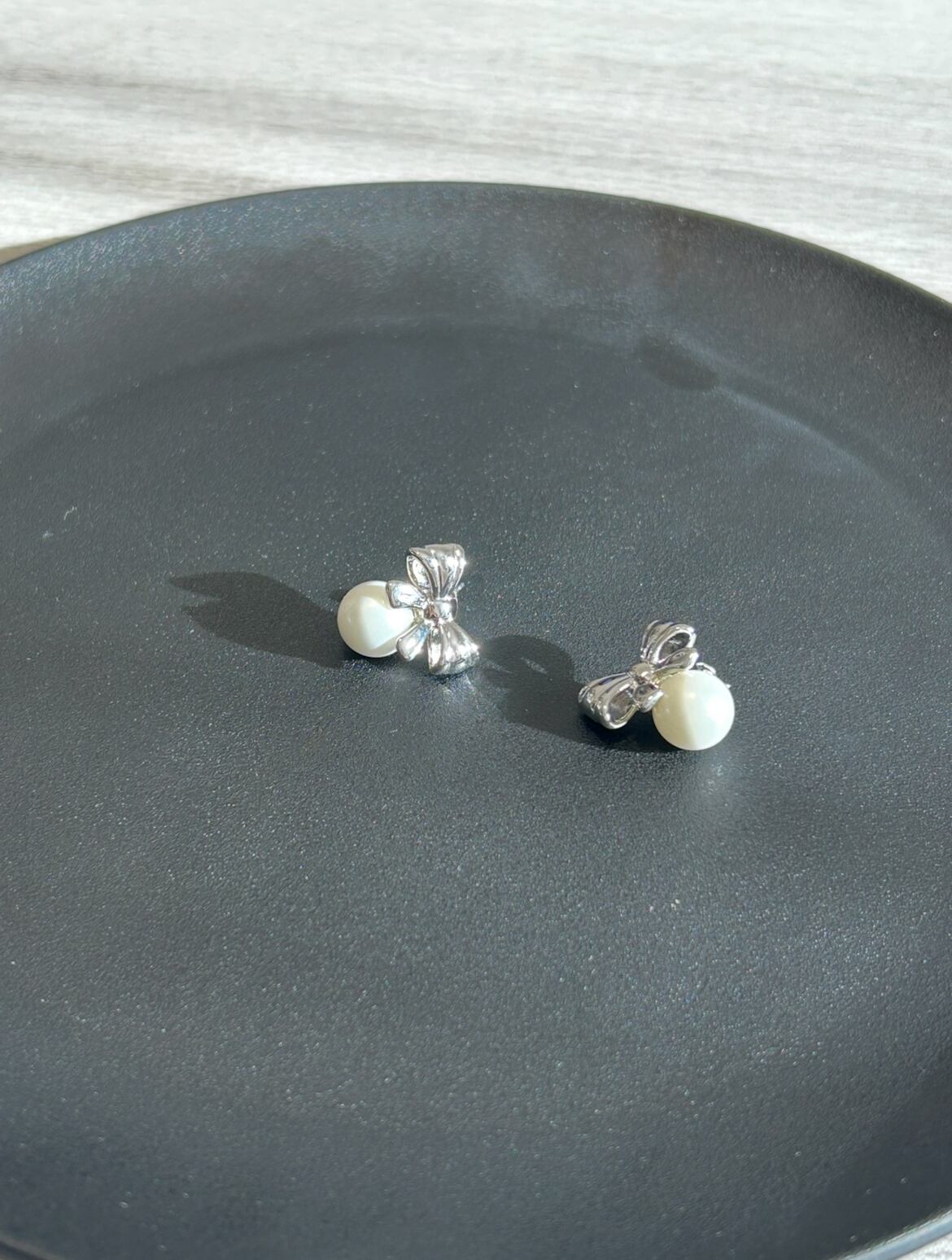 キュートなリボン型デザインに淡水パールが加わることで、華やかでありながらも繊細な印象を与えます。