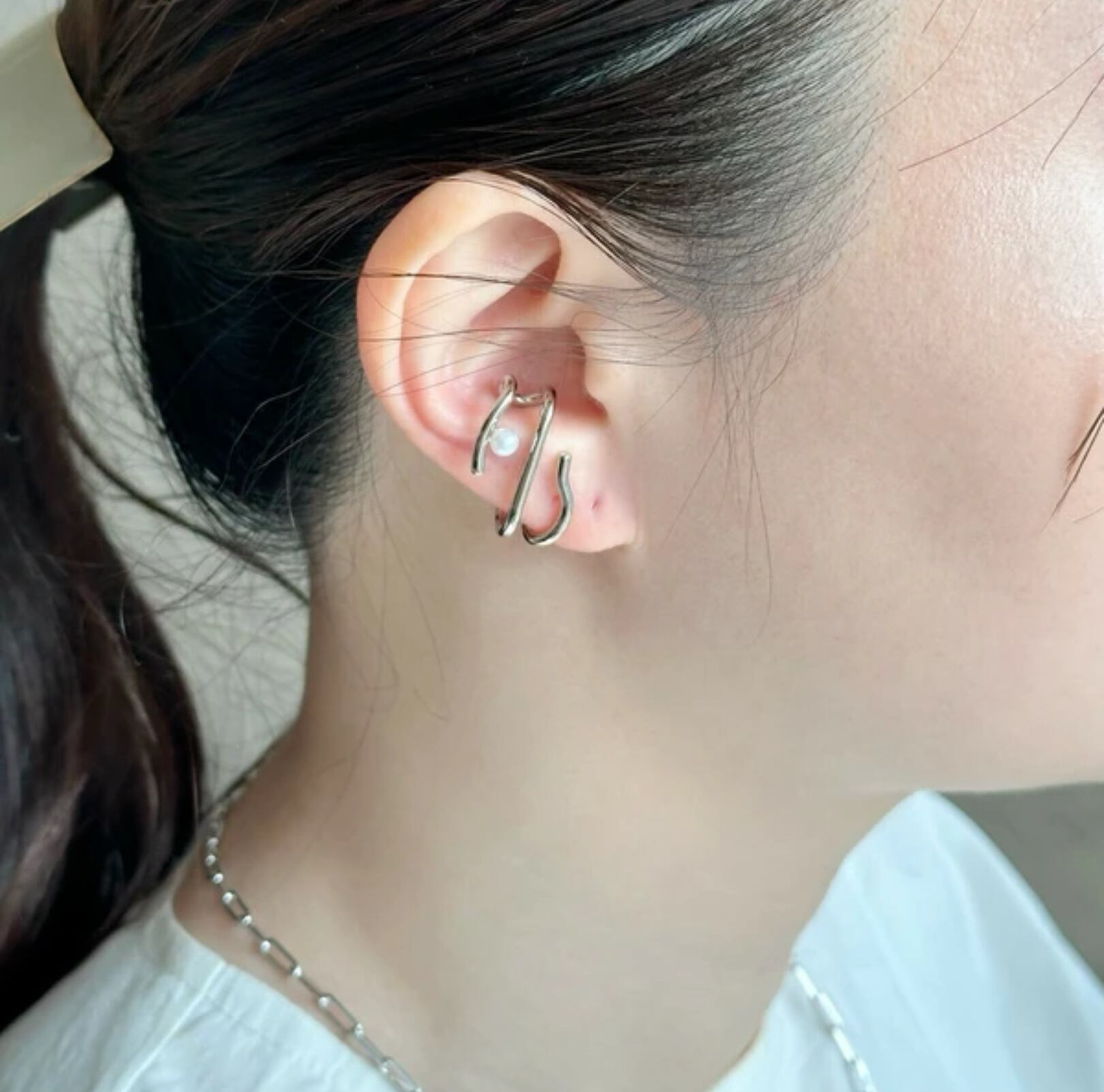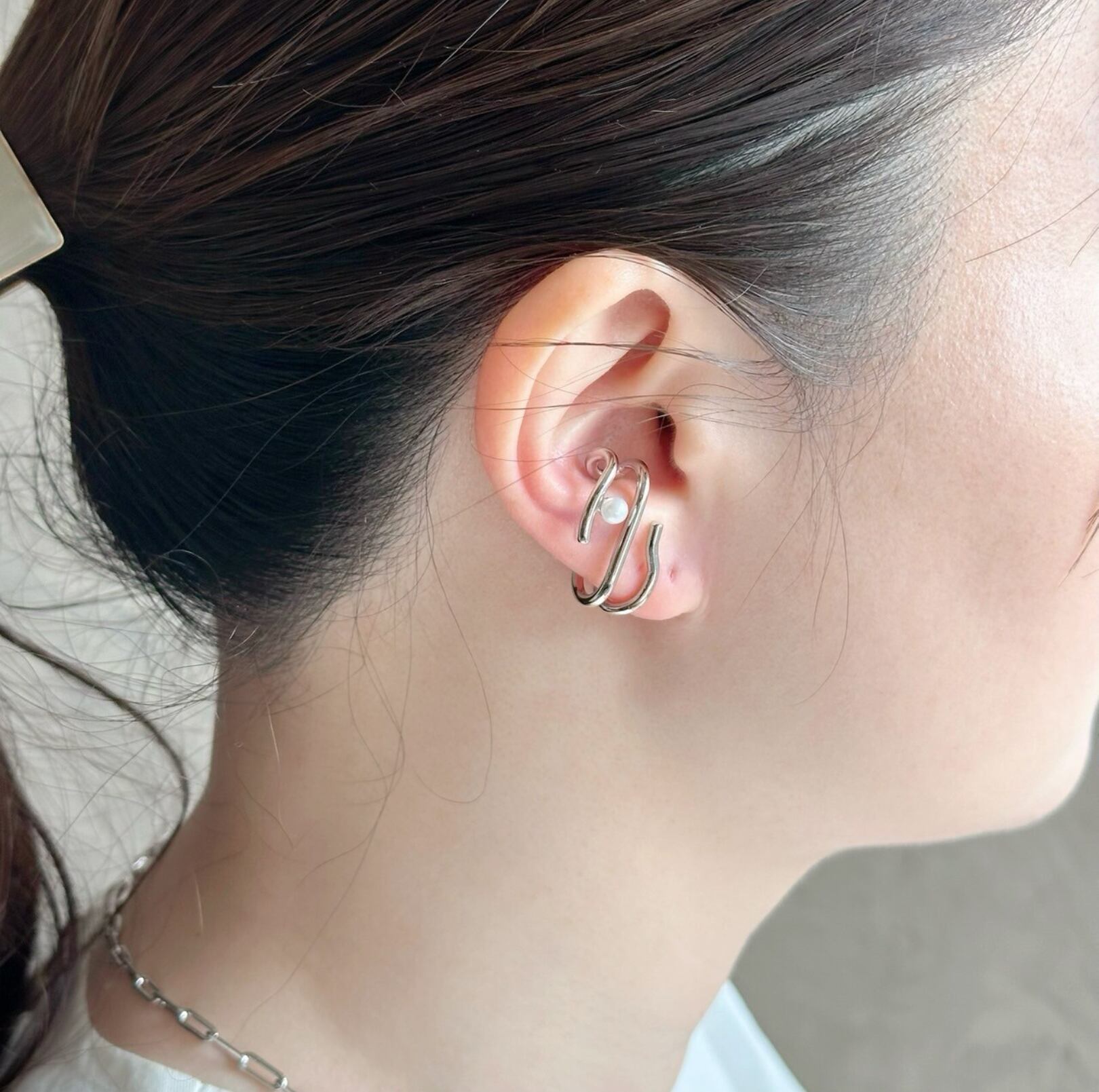 韓国製の、まるで重ね付けしているかのようなボリューム感が魅力のイヤーカフ。